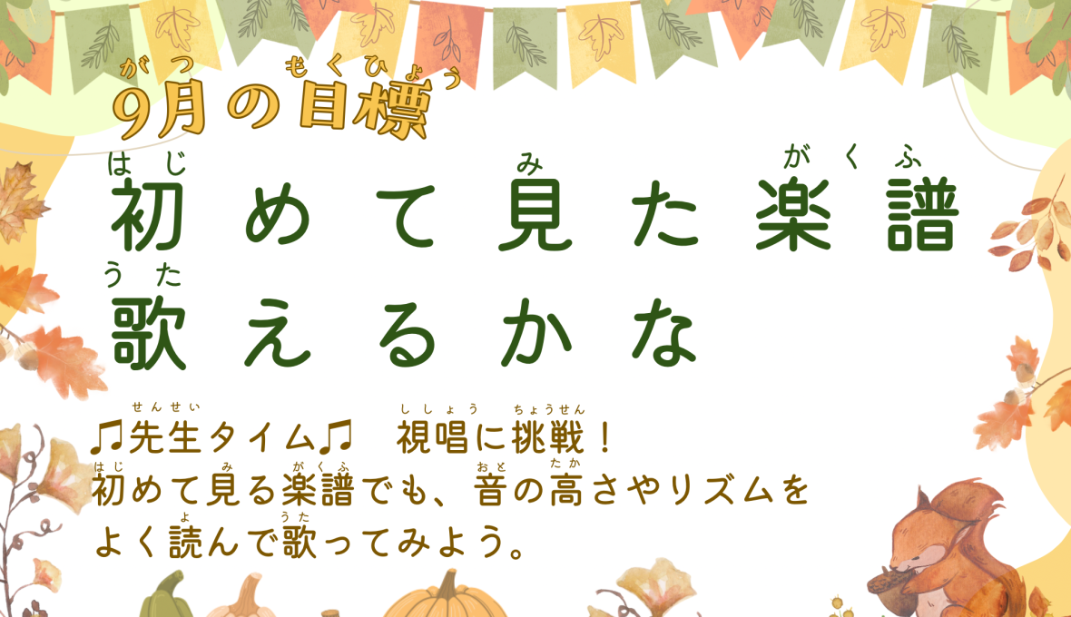 Contents1 9月の目標は「初めて見た楽譜、歌えるかな?!」✨2 初めて見る楽譜にチャレンジ!3 歌って分かるリズムとフレーズ4 「初めて見た楽譜がこわくない!」を目指して 9月の目標は「初めて見た楽譜、歌えるかな … 続きを読む 2025年9月|今月の目標
