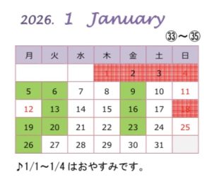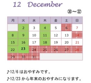 ♪12月のレッスンは23日(火)からおやすみに入ります。