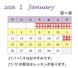 ♪1月12日(月)は、祝日ですがレッスンがあります♪