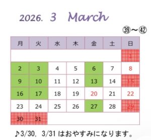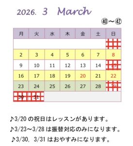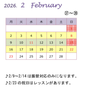 ♪2月8日〜14日は面談週となります。つきましては、あけみ先生の担当レッスンのみ、振替ができかねますのでご了承ください。